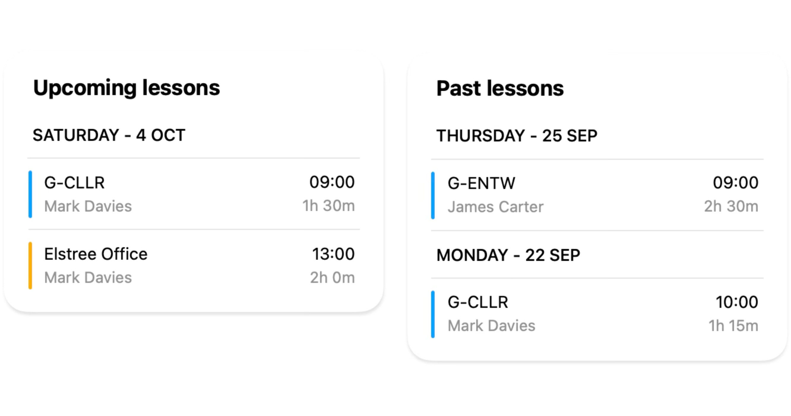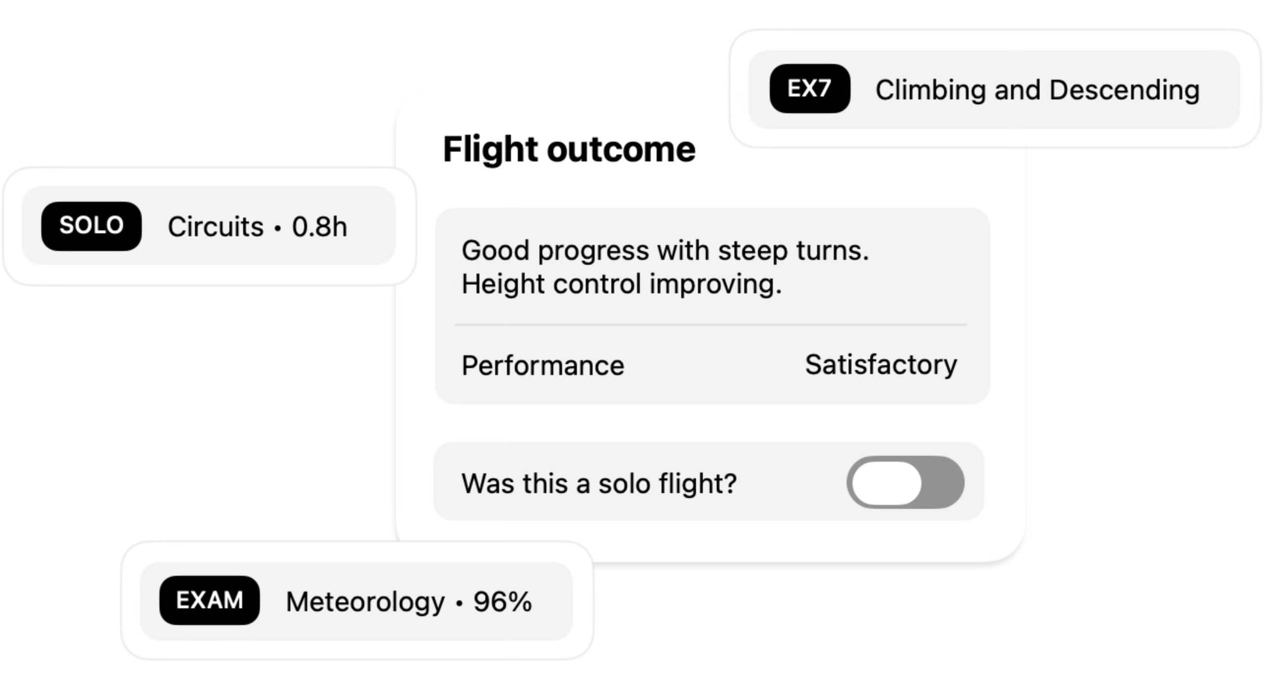 Instructors add an outcome after each lesson to keep progress accurate. This keeps every flight consistent and instructors aligned.